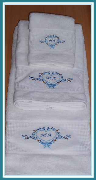 Ajuar doméstico para su hogar y regalos, en los que bordamos inciales, nombres, logotipos y diferentes motivos.